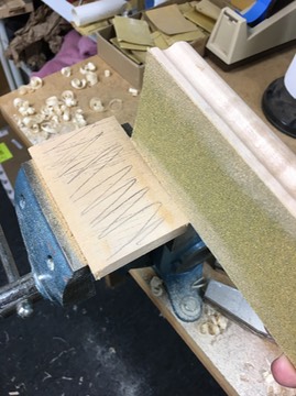 Putting a radius on the tail block. Sand until pencil marks are gone.
