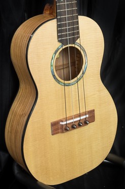 From a building standpoint, ukuleles offer the unique opportunity to work with woods that are seldom, if ever, used in guitars. Due to their small size, materials costs are reasonable and the instruments can be built quickly. The tenor ukulele shown here was built with Pistachio back and sides.
